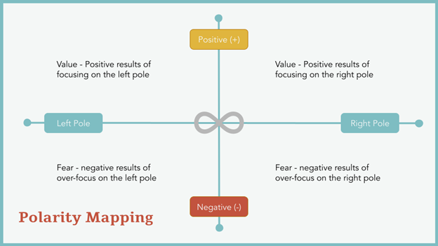 Polarity Mapping is a systems thinking tool for navigating ongoing tensions that cannot be solved by choosing one side over the other. Instead of framing challenges as problems to fix, it helps you see the value and risks of each side of a tension — for example, safety versus biodiversity. By visualizing these interdependencies, Polarity Mapping makes it easier to manage trade-offs, anticipate unintended consequences, and make decisions that support long-term balance and resilience.