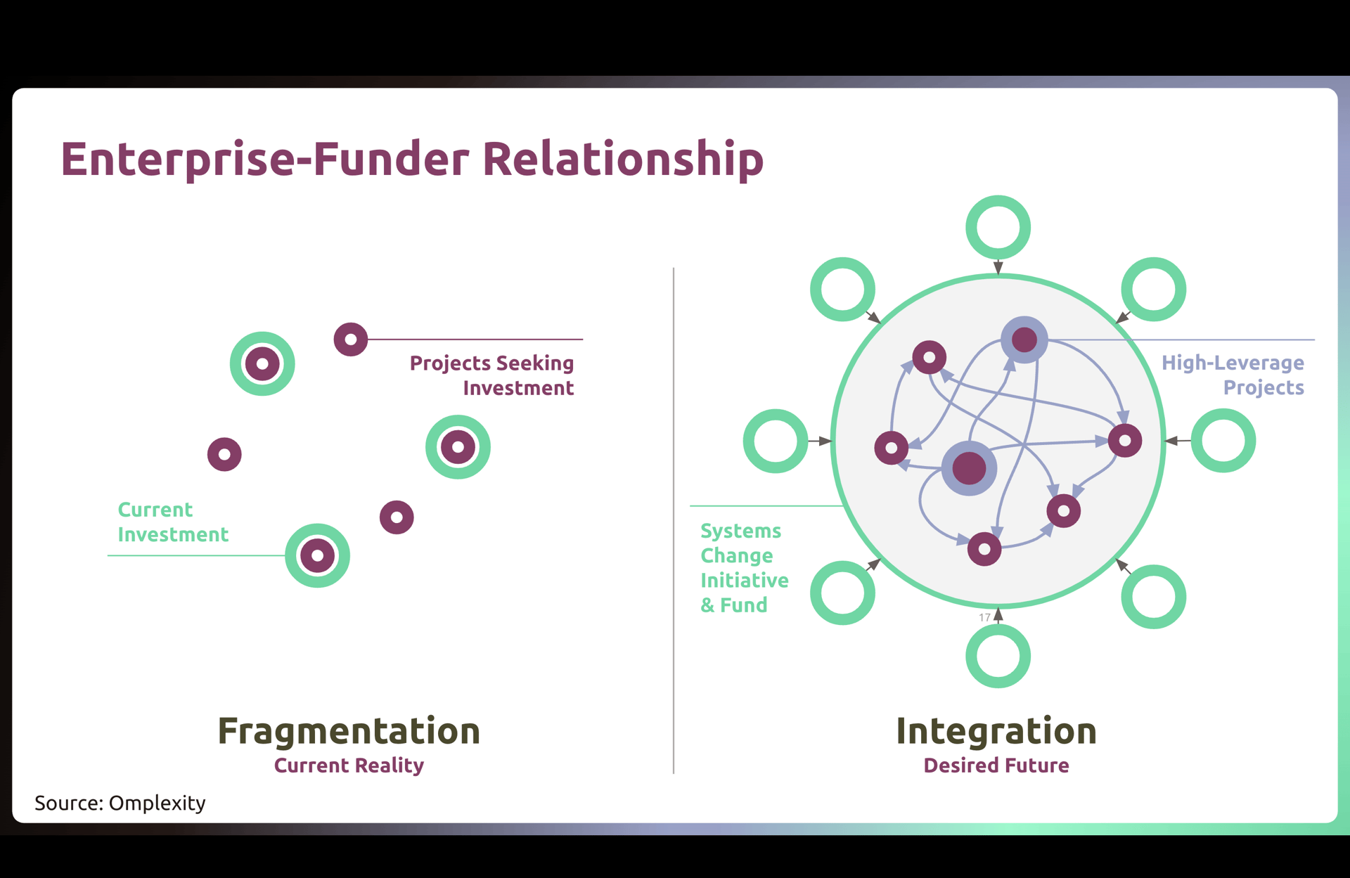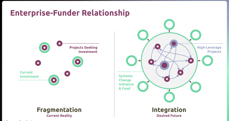 What emerged wasn’t just new knowledge—it was a shift in how we relate to complexity. Systems change in funding means moving from isolated solutions to long-term stewardship, and from fragmented transactions to ecosystem coherence.