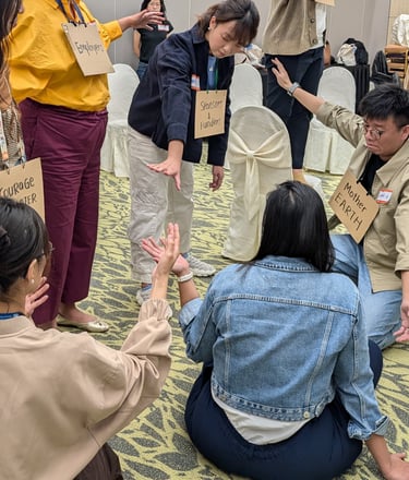 – and/or a 3D Mapping activity where you create a physical model of the system you serve, revealing hidden connections and perspectives.A guided future visioning exercise, helping your team anchor possibility in the sensory and emotional and chart a path forward.
