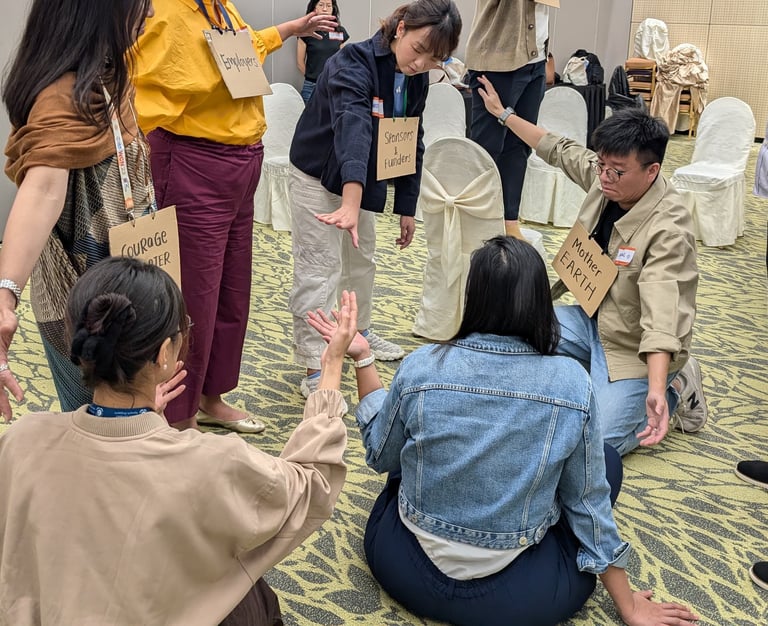 A systemic constellation exercise to identify visible and hidden dynamics and power structures shaping the system: participants will move past analysis into embodied awareness to step into the perspectives of key actors, revealing new leverage points for change.